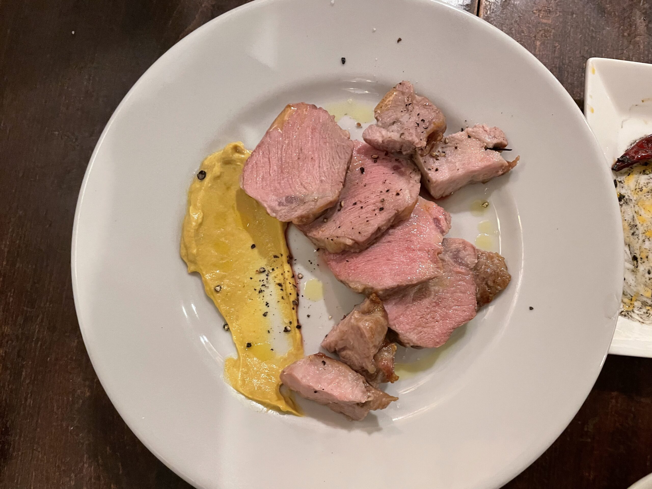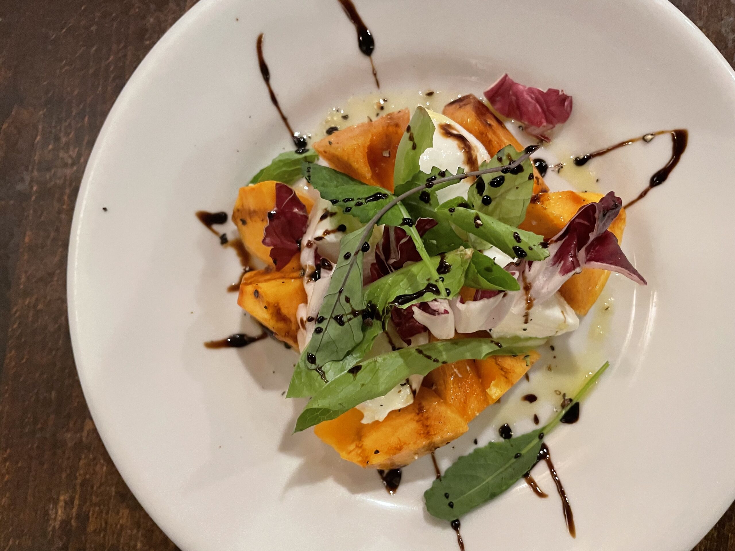 フルーツの甘みとモッツァレラのミルキーさが心地よく、口の中をリセットしてくれる一皿。
